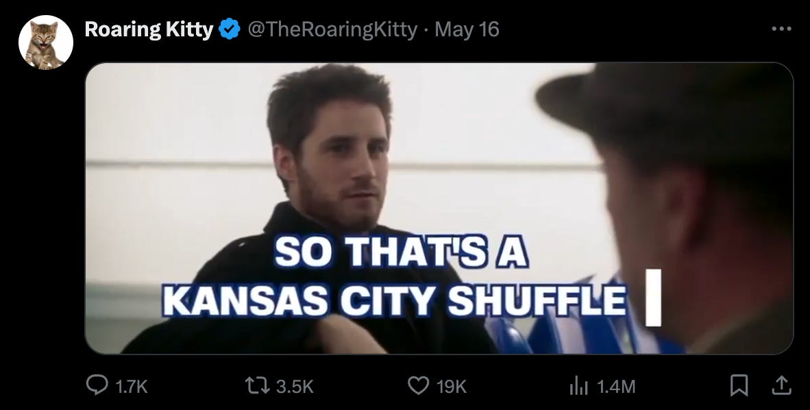 Roaring Kitty May 16th - ‘Kansas City’ Shuffle Reference