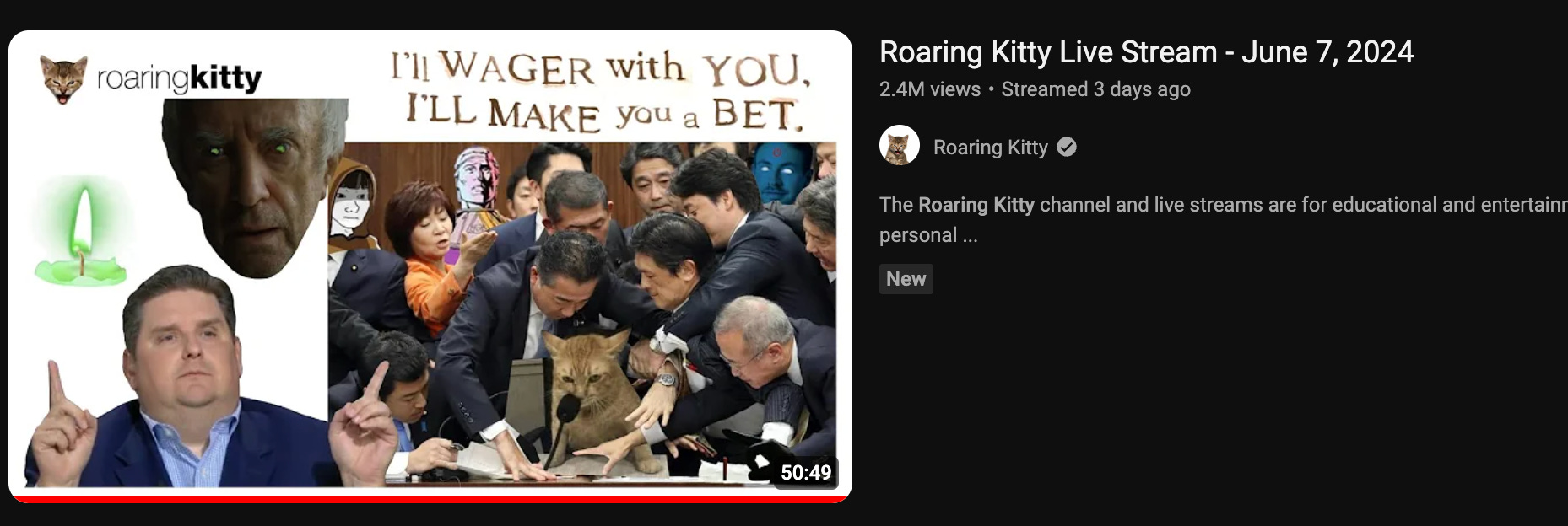 Roaring Kitty’s 4D Chess Move: Using Memes to Expose Manipulated Prices to a Live Audience